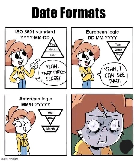 Date Formats | No Comments Share this by: Share on E-mail Share on SMS Share on WhatsApp Share on X (Twitter) Share on LinkedIn Tags: meme, Programming, spreadsheets